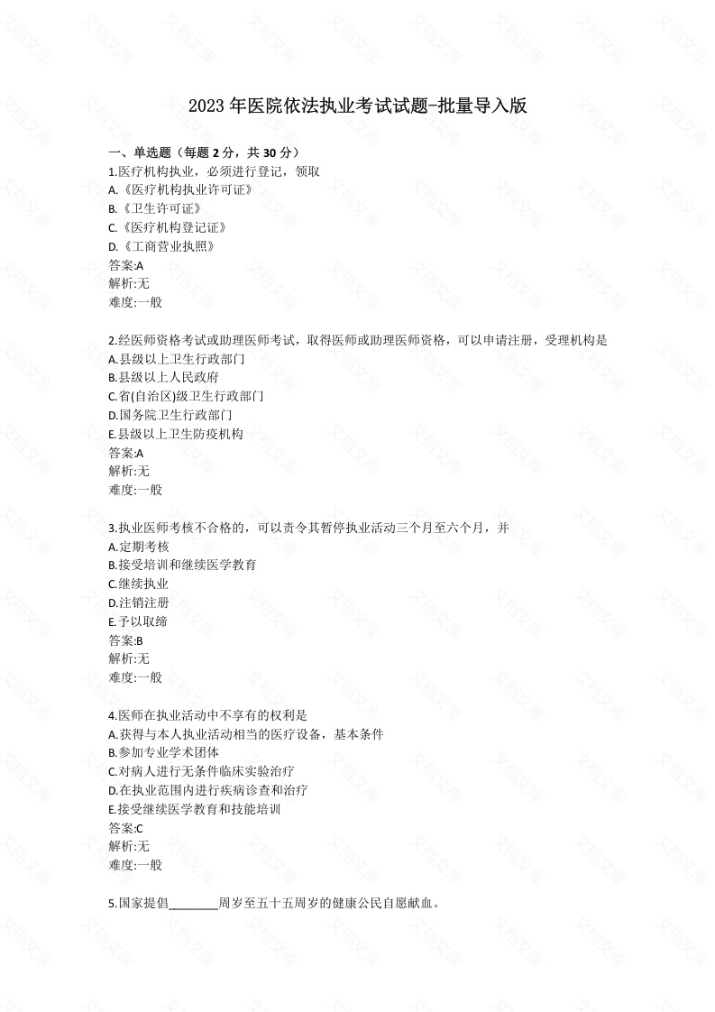 首页法律规章依法执业2023年医院依法执业考试试题-批量导入版